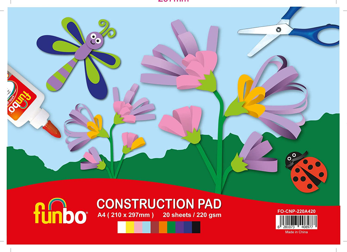 لوحة بناء من فنبو، 220 جرامًا لكل متر مربع، مقاس A4، 20 ورقة، 10 ألوان متنوعة