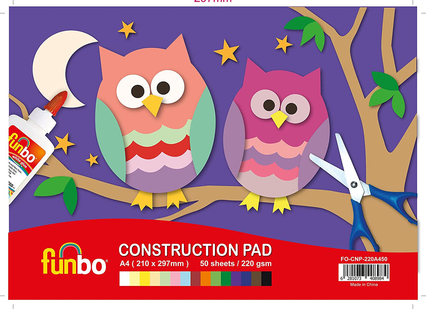 لوحة بناء من فنبو، 220 جرامًا لكل متر مربع، مقاس A4، 50 ورقة، 15 لونًا متنوعًا
