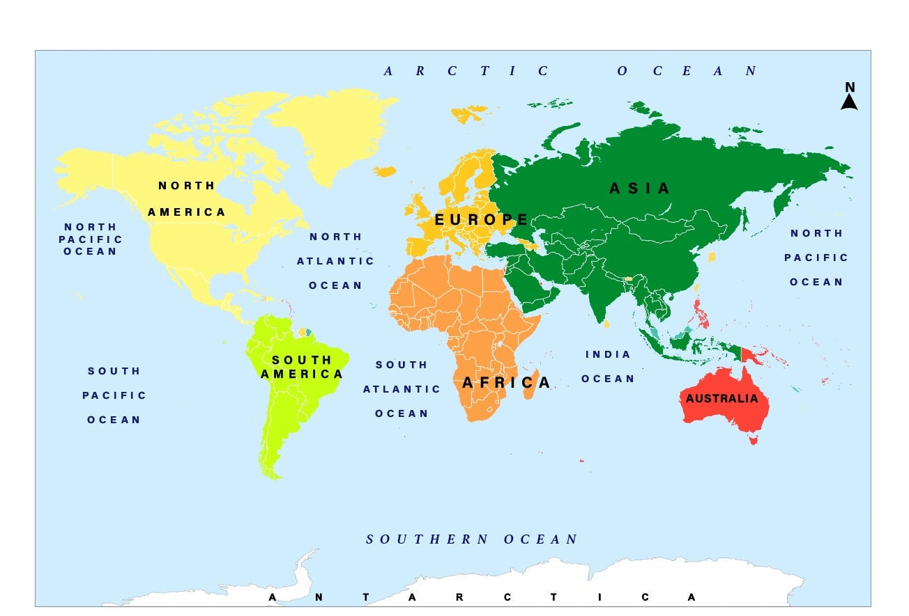 خريطة عملاقة للعالم 77.5 × 46 بوصة للقارة