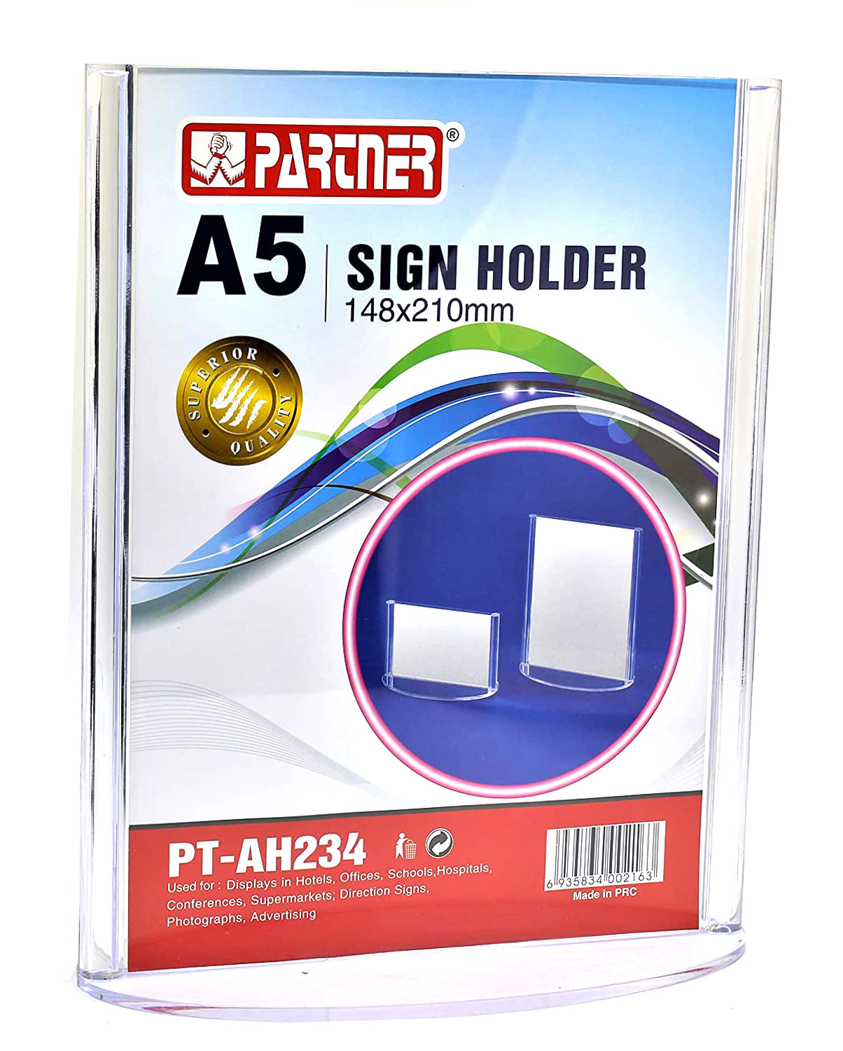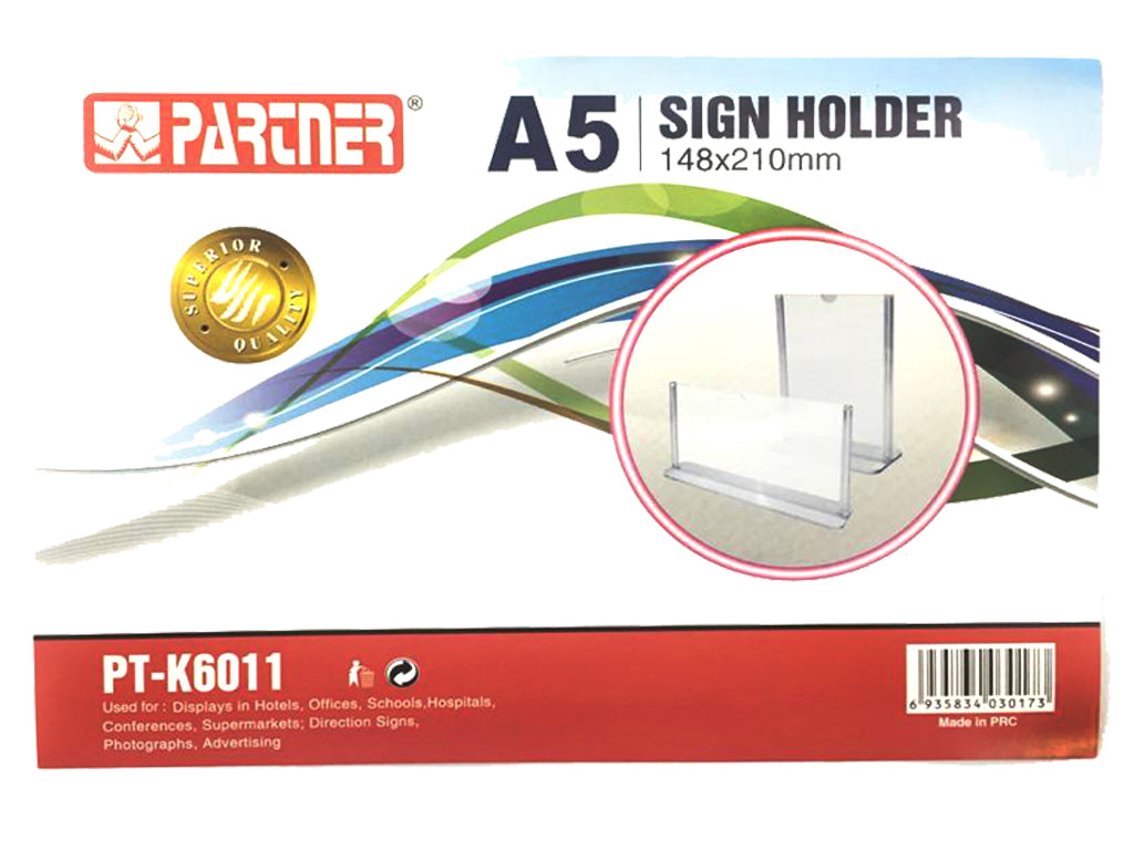 حامل لافتات أكريليك شريك 148 × 210 مم على شكل حرف T مقاس A5 عمودي وأفقي