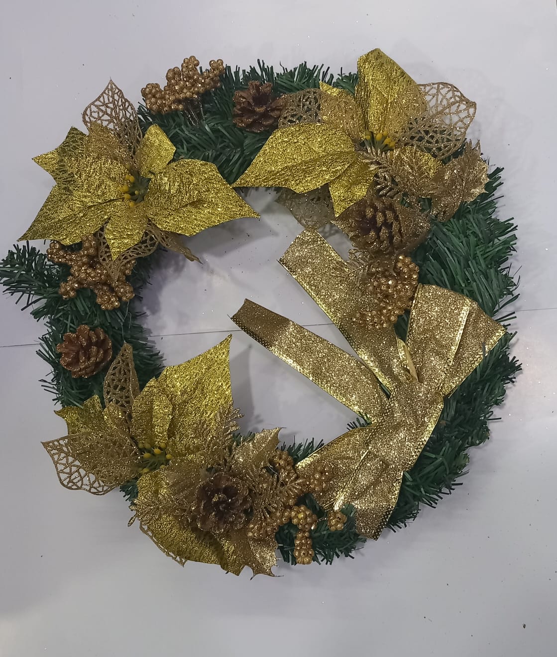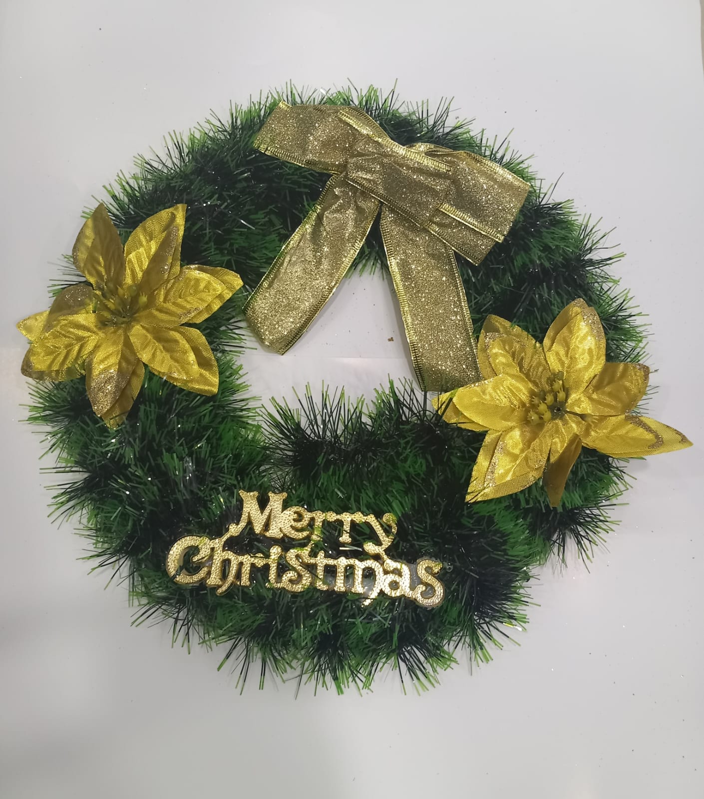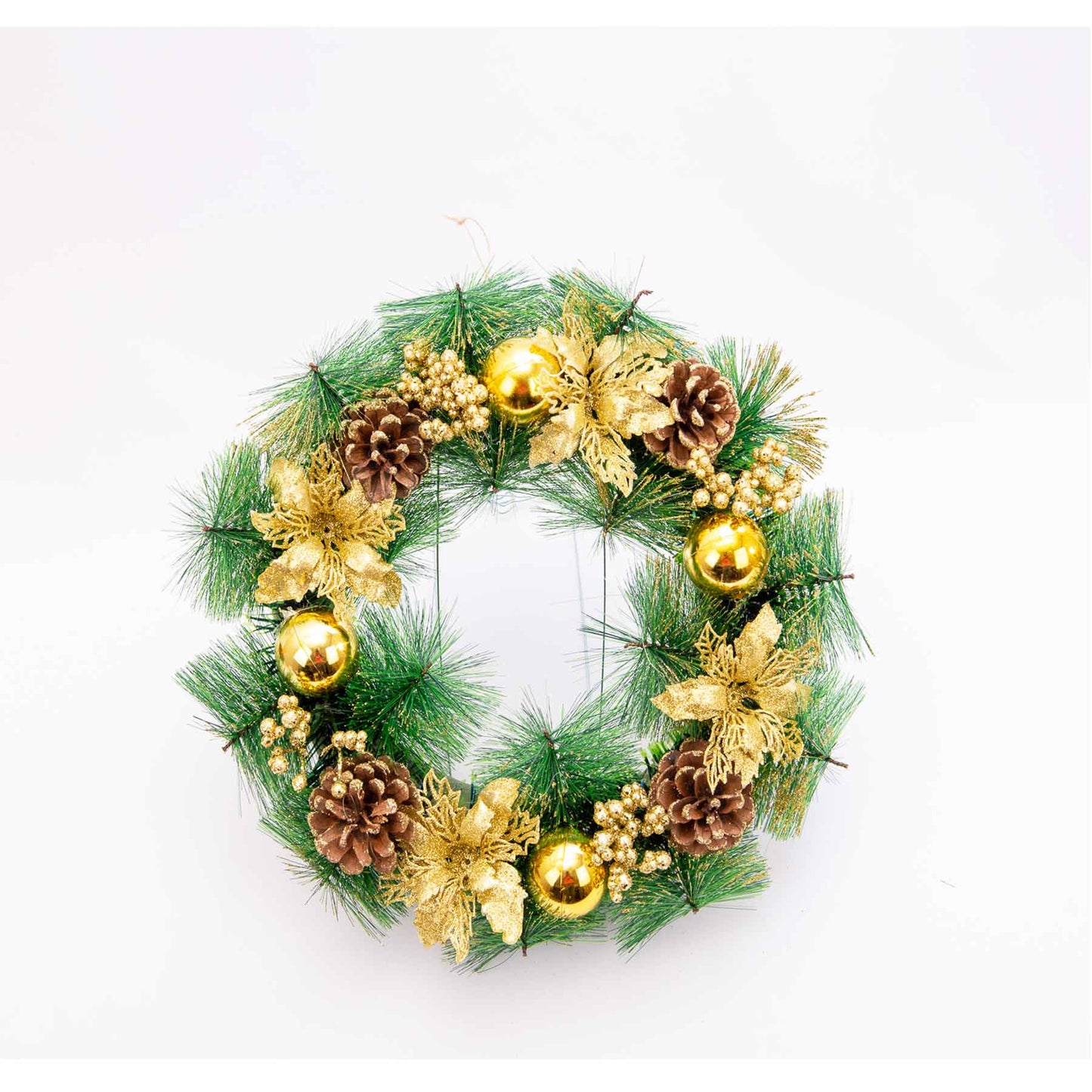 وقت الحفلة - أكاليل زهور مصنوعة يدويًا من علامات عيد الميلاد المجيد باللون الأخضر والذهبي مقاس 40 سم