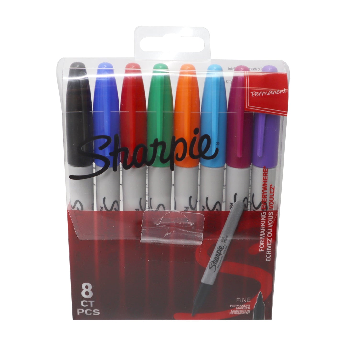 أقلام تحديد دائمة من شاربي ذات رأس رفيع 8 ألوان