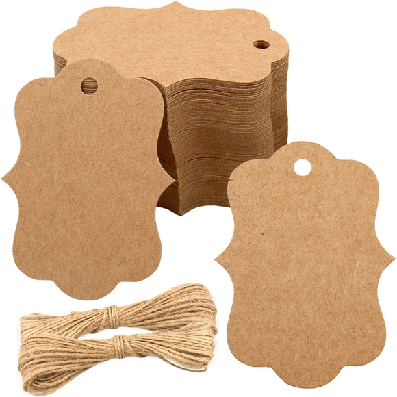 200 Kraft Paper Gift Tags with 10m Jute Twine, Brown, for Weddings, Birthdays, Anniversaries, Holidays