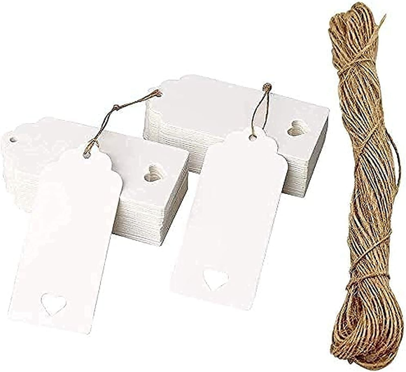 200 Kraft Paper Price Tags, Gift Tags with Heart Shaped Labels, 10m Jute Twine