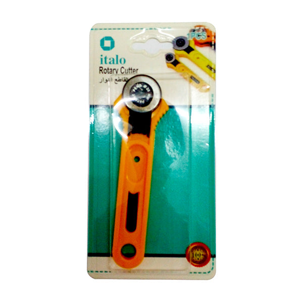 A Rotary Cutter is a cutting tool for fabrics foam and leather. It is a sharp blade wheel, in a handle, used to slice through multiple layers of fabric.