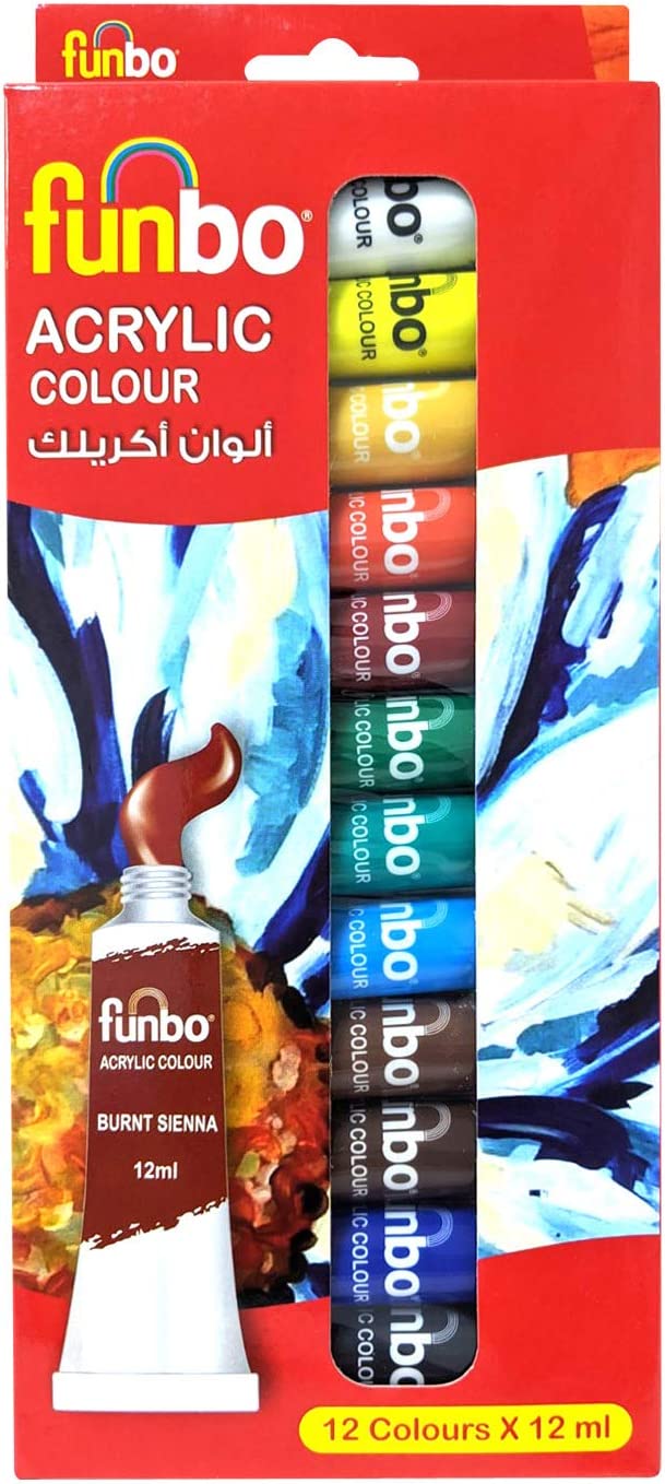 Funbo Acrylic Colour Paint Set 12 X 12ml Tubes