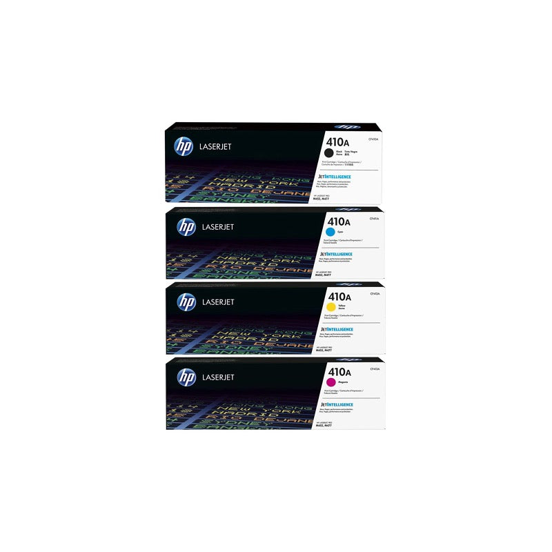 Upgrade your business profile with this HP 410A LaserJet Toner Cartridge Set. It delivers powerful results throughout your print run as it prints off up to 2, 300 pages, yet the quality is assured thanks to the precision-engineered design. It minimizes leaks and smudging to reduce overall paper waste and maintenance issues, and it promotes rapid and accurate performance thanks to its powerful HP printing technologies. As you use the ink, this HP 410A LaserJet Toner Cartridge Setsends you an alert when levels are low, and when it is out, you do not have to send this cartridge to the landfill as it's recyclable through the HP Planet partners program. Page maximizer technology enables more pages per cartridge than previous versions of HP toner cartridges. Page maximizer technology enables more pages per cartridge than previous versions of HP toner cartridges. Help ensure you are getting the authentic HP quality you paid for with innovative anti-fraud technology. Continue to count on professional quality at high speeds – print after print – with HP ColorSphere 3 toner. Page maximizer technology enables more pages per cartridge than previous versions of HP toner cartridges. Page maximizer technology enables more pages per cartridge than previous versions of HP toner cartridges. Help ensure you are getting the authentic HP quality you paid for with innovative anti-fraud technology. Continue to count on professional quality at high speeds – print after print – with HP ColorSphere 3 toner.